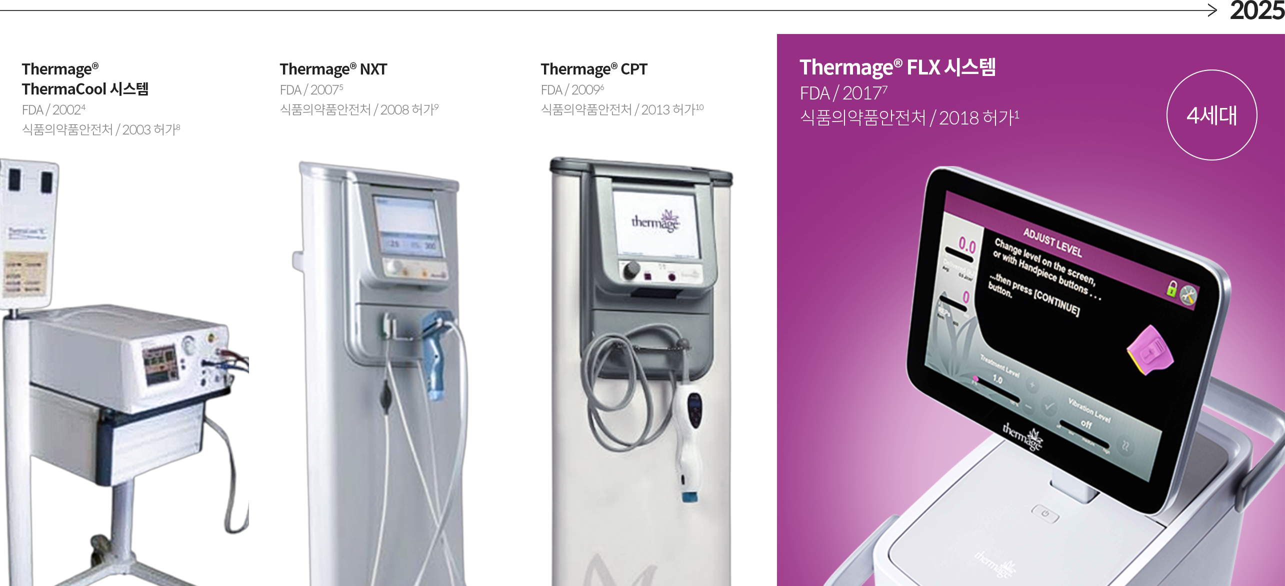 - Thermage® FLX 시스템 FDA / 20177 식품의약품안전처 / 2018 허가1 4세대