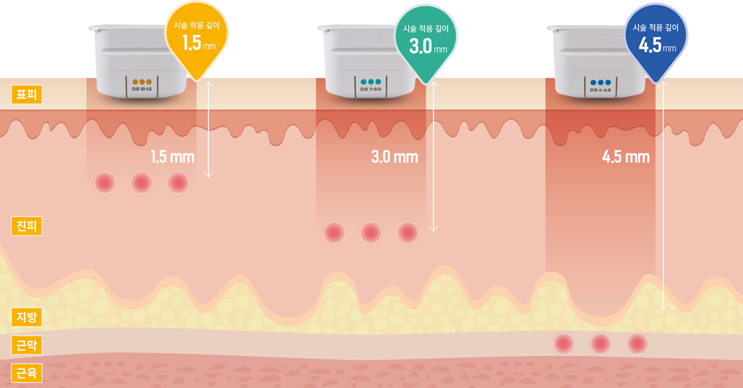 고강도 집속 초음파 에너지를 정확하게 타겟 피부층에 전달하여