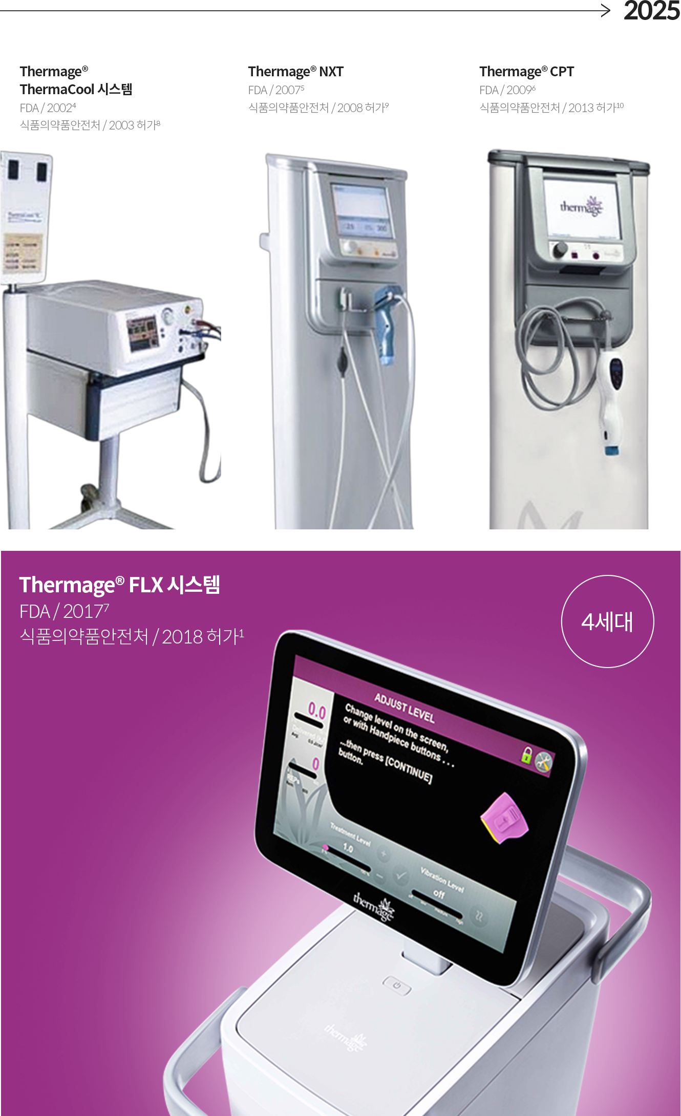 - Thermage® FLX 시스템 FDA / 20177 식품의약품안전처 / 2018 허가1 4세대