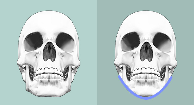 - 턱이 평균보다 길거나 비대칭 형태인 경우