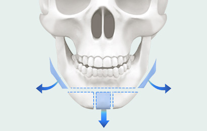 턱 끝의 넓이까지 한번에 해결할 수 있는 수술 방법으로, 사각턱부터 턱의 앞쪽까지 부드럽게 절제해 라인을 교정합니다.